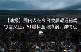 【速报】圈内人在今日凌晨遭遇秘闻 欲言又止,51爆料全网炸锅,详情点击 昨日凌晨,一则令人震惊的消息...