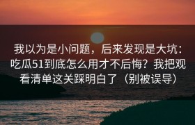 我以为是小问题,后来发现是大坑:吃瓜51到底怎么用才不后悔?我把观看清单这关踩明白了(别被误导) 前...