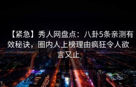 【紧急】秀人网盘点:爆料5大爆点,业内人士上榜理由彻底令人情绪失控