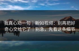 我真心劝一句|新91视频:别再把好奇心交给它了|别急,先看这条细节 如果你和我一样爱刷视频,最近应该...