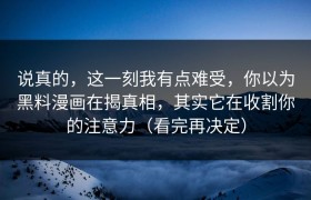 说真的,这一刻我有点难受,你以为黑料漫画在揭真相,其实它在收割你的注意力(看完再决定)